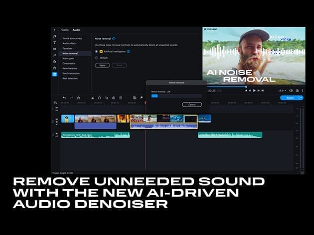 • Make the sound more voluminous with the new Reverberation tool and remove any background noise using the power of AI