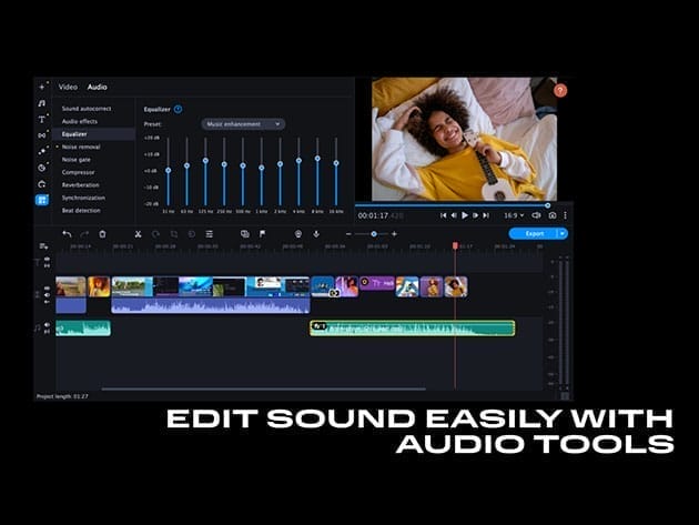 Manage soundtracks: adjust the volume or mute the sound, add special effects, & use the equalizer to alter frequency components