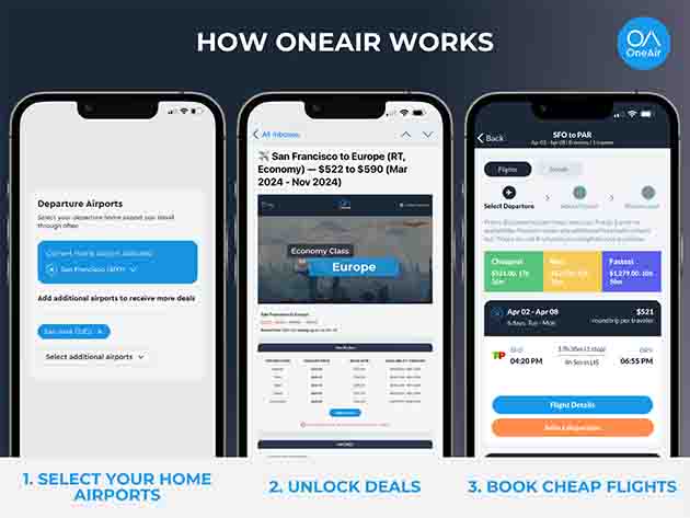 Having a lifetime subscription to OneAir Elite means you can book your dream vacation any time you want – forever. It’s easy to get started with OneAir: