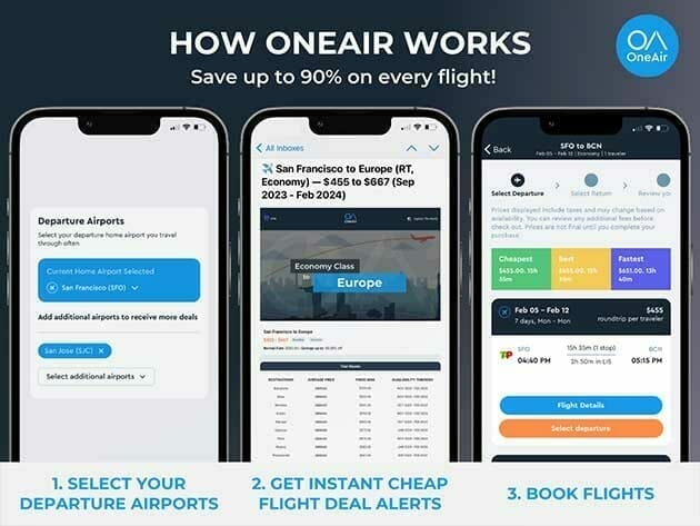 OneAir is an AI-powered all-in-one, members-only travel app that helps you find awesome flight and hotel deals with deep discounts you won’t find anywhere else. Our intelligent engine scans and tracks millions of fares in real time to top destinations worldwide. When the system finds an incredibly cheap flight deal, members receive an email and a mobile alert.