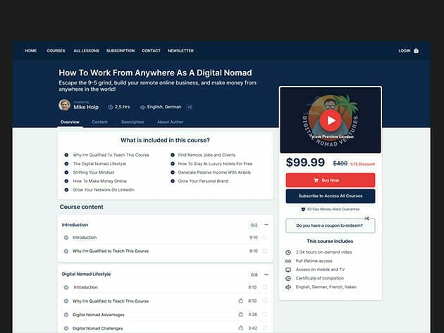 The user experience for both you and your students is top-notch and is comparable to the experience provided by some of the best online course marketplaces on the market. The platform includes all the tools that you need to promote your online courses, like coupons, subscriptions, lifetime plans, team plans, bundles, integration with Facebook Ads, lead generation, integration with email marketing providers, and much more.