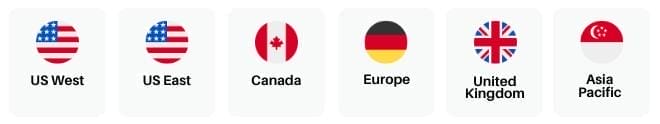 Choose the region closest to you for optimal performance. Every location runs on enterprise-grade S3 storage infrastructure in-region, ensuring reliability, redundancy, and blazing-fast speeds.