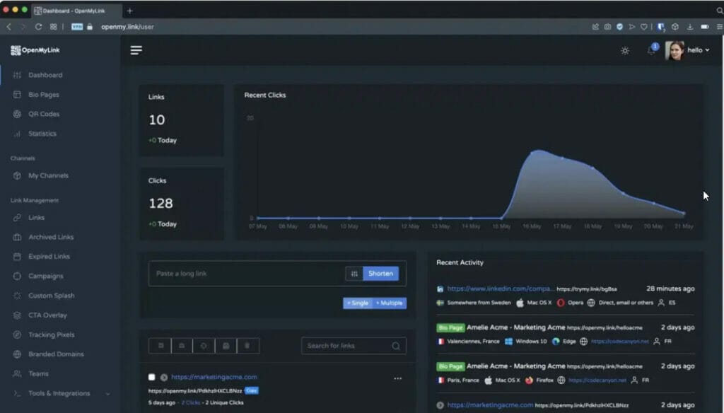 Where you can shorten long links into a smart links that you can use to monitor clicks and optimize your marketing campaigns. Includes geotargeting, device targeting, a powerful dashboard, supports custom domains, Splash & Overlay Pages, Bio page creator, Bundles & Link Rotator, Private Service, URL Bookmarking System with Bookmarklet, Anonymous User History, Geo-targeting & Device Targeting System and much much more.