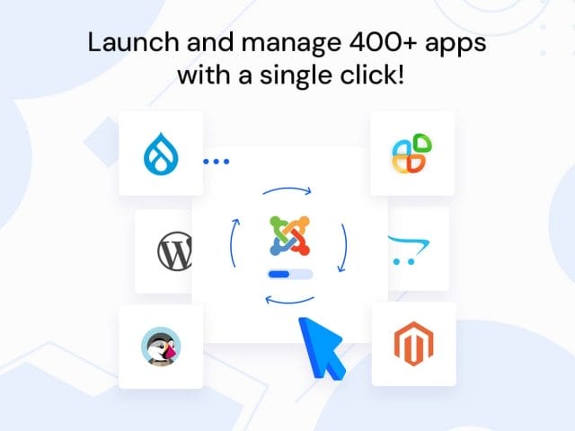 One-Click Apps: Launch and manage over 400 apps like WordPress, Joomla, Drupal, Magento, and more with a single click.