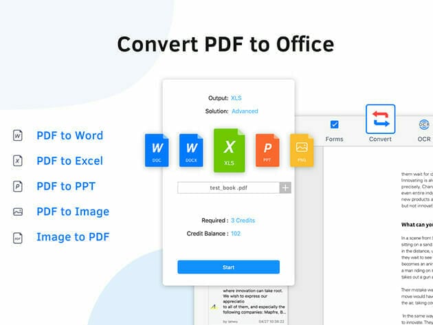 Support PDF to Word, Excel, PPT, and image conversions (docx, xlsx, pptx, jpg, png, gif & bmp).