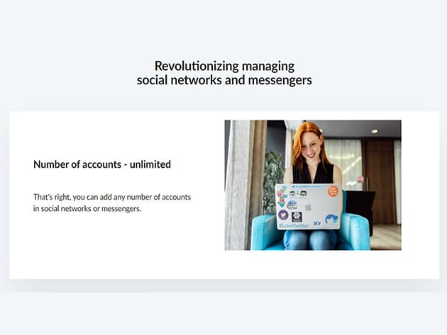 Unlimited number of accounts. Add any number of accounts in social networks or messengers