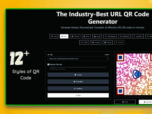 12+ different use cases. Text, URL, Phone, SMS, Email, WhatsApp, FaceTime, & more