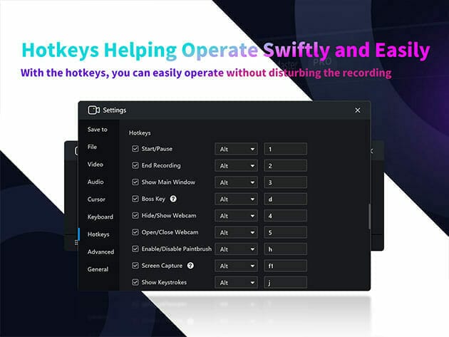 • Hotkeys. Help manage all the operations with key combinations without launching the software interface