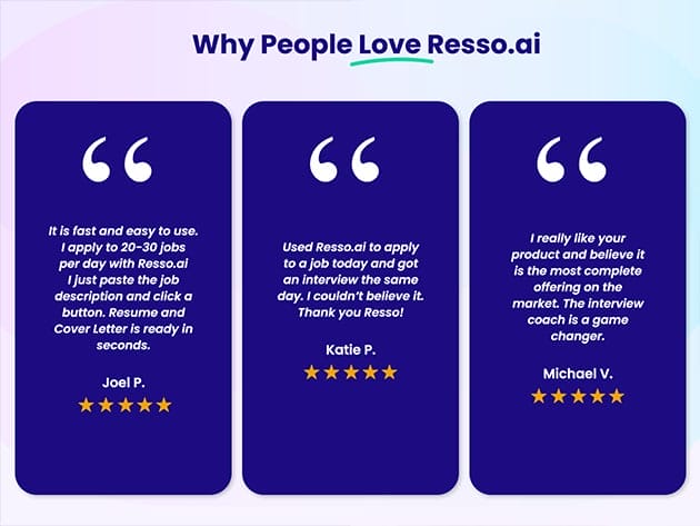 Revolutionize your job search with Resso.ai! Elevate your profile and land that dream job in a fiercely competitive market. Our suite of AI tools includes Interview Practice, Resumés, Cover Letters, and Interview Questions, all designed to make you stand out. Optimize your LinkedIn profile effortlessly. Maximize your interview success with advanced analytics, tracking your performance question by question. Perfect your responses with confidence. Supercharge your career journey with Resso.ai today!