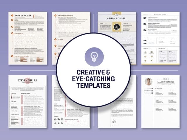 Creative Resumes: Feature eye-catching designs & layouts that will capture the attention of potential employers
