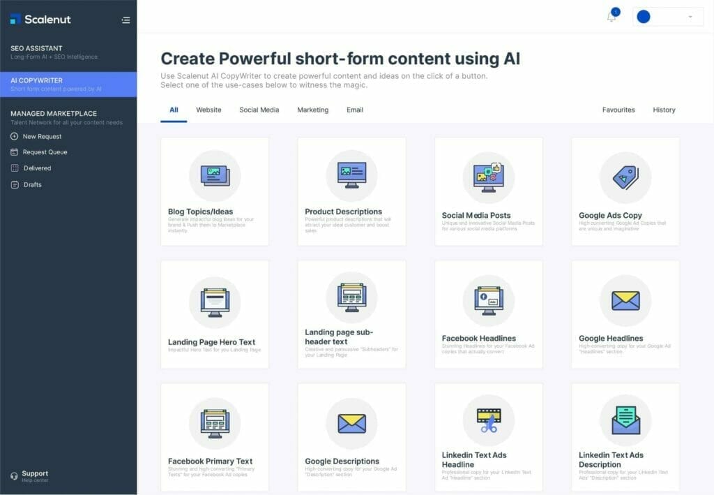 With AI Copywriter, you will get new and limitless content ideas at the touch of a button. It’s your obvious advantage, which extends to full blogs, email headers, ad copy, social media postings, and various other content formats.