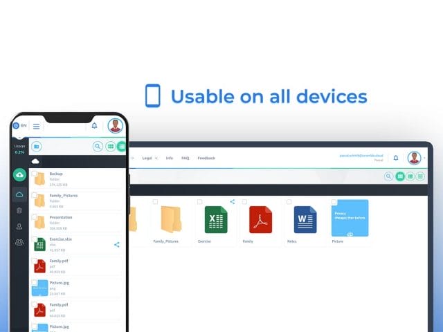 Create encrypted groups, share documents, watch videos securely and mount your cloud as a network drive via WebDAV. Access your data from all your devices via desktop client, WebDAV, or web app.