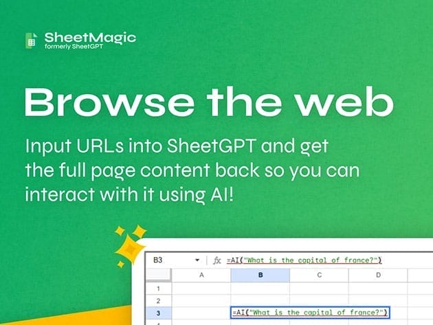 • Browse the web. Input URLs into SheetMagic & get the full-page content back, so you can interact with it using AI