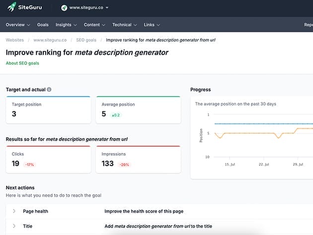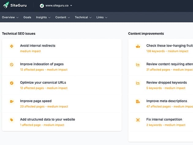 Unlock your website’s full potential with SiteGuru. Simply enter your URL to launch a comprehensive SEO audit that evaluates sitemaps, meta descriptions, headings, and more, presenting a clear, actionable SEO to-do list with no technical installation required. Enjoy effortless optimization with our intuitive To-Do List, monitor keywords, analyze competing content, and enhance your content using AI tools. SiteGuru simplifies SEO with step-by-step guidance, integrates audit results with Google Analytics and Search Console for clear insights, and provides real-time updates on SEO opportunities and keyword shifts. Compatible with any CMS—WordPress, Drupal, Magento, or custom-built—SiteGuru makes mastering SEO easy.