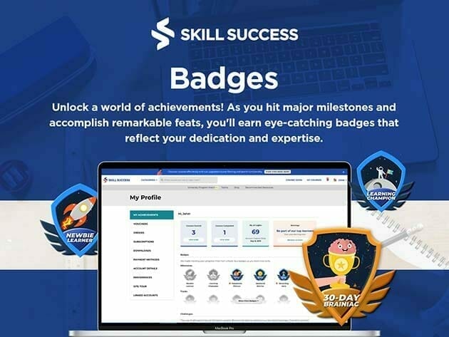 • Gamified Learning: Unlock cool badges as you learn a new skill