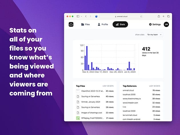 Track views across your entire account & gain valuable insights into referrers and top-performing files