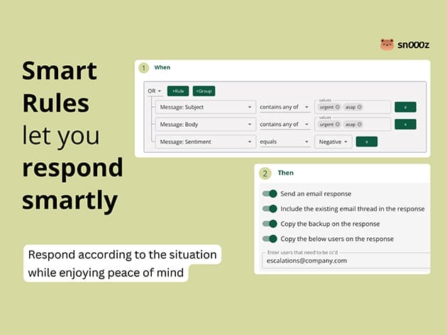 • Fewer customer escalations. Stay on top of critical customer interactions with Snoooz’s automated alert system, minimizing the risk of customer escalations in your absence