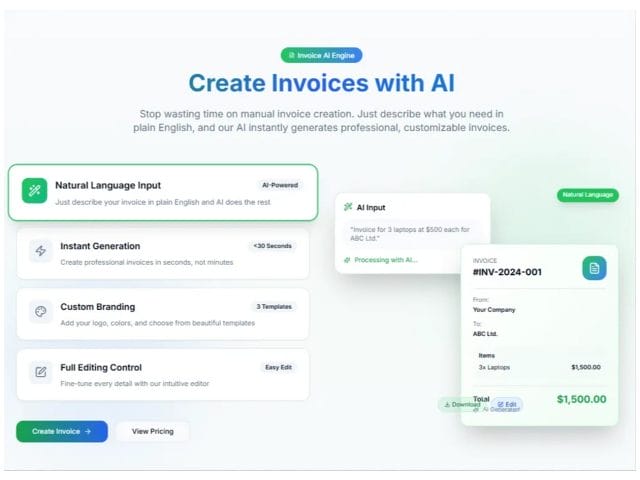 Natural Language Input: Just describe your invoice in plain English & AI does the rest.