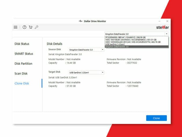 - Click on ‘Clone Disk’ option to create exact replica of your drive