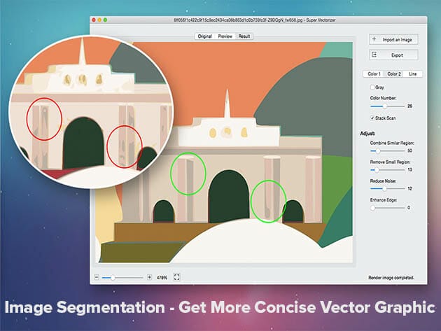 Segmentation editing capabilities. Trace more clean line borders that greatly simplifies the information to get more concise vector graphic for the ease of editing