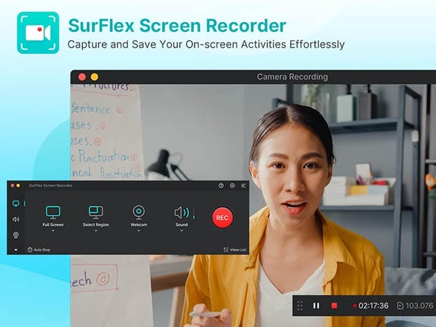 SurFlex Screen Recorder is a professional-grade 4K screen recording software that captures and preserves your on-screen activities in their original quality. It offers a wide range of applications, from recording video gameplay and online videos to presentations, tutorials, webinars, online meetings, or podcasts.