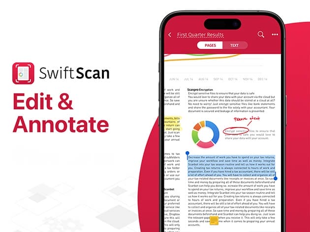 In addition to being an all-in-one document scanner, SwiftScan is the best tool for working with PDFs. Whether you need to add notes to a document, sign it, redact or highlight important sections, SwiftScan makes it easy to get the job done quickly. You can even add and remove pages, or rearrange the order.