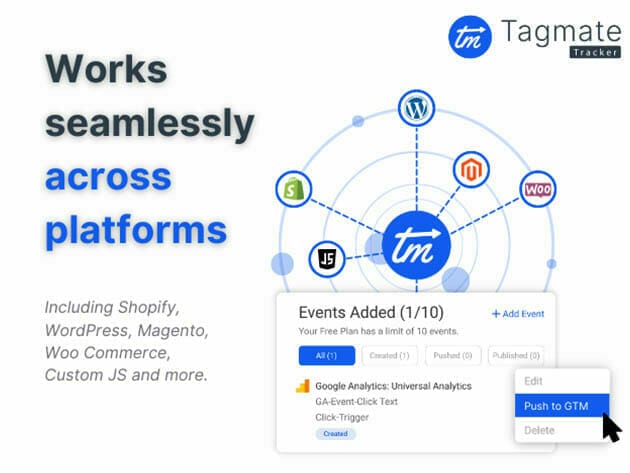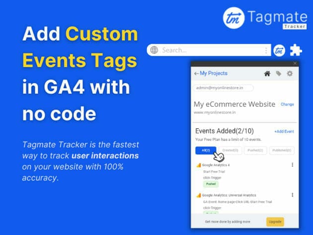 That’s where Tagmate Tracker comes in. Tagmate is a SaaS product to set up most of your Google Analytics (GA3/ GA4) web tracking requirements by automating the Google Tag Manager (GTM) implementation process in a few clicks. There are 40+ predefined industry templates like eCommerce add to cart, page scroll tracking, lead form submission tracking, page load time tracking, and more. If you have an existing UA/ GA3 setup and want to migrate your tags to the new GA4, Tagmate functions seamlessly and with 100% accuracy.