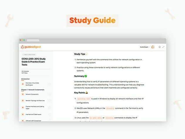 Whether you’re a beginner or an experienced professional, GuidesDigest provides a tailored path specifically designed for you. Choose from a wide range of study guides, including CompTIA A+, Network+, Security+, CySA+, AWS Certified Cloud Practitioner, Microsoft Azure Fundamentals, Salesforce Associate Certification, CCNA, (ISC)² Certified in Cybersecurity℠ – CC, and Project Management Professional (PMP). Unlock your IT potential now!