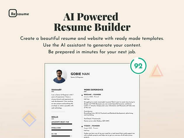 Now, it’s easy to create engaging, professional resumes, cover letters, and portfolios that will impress your next client or interviewer. Get access to Resoume today!