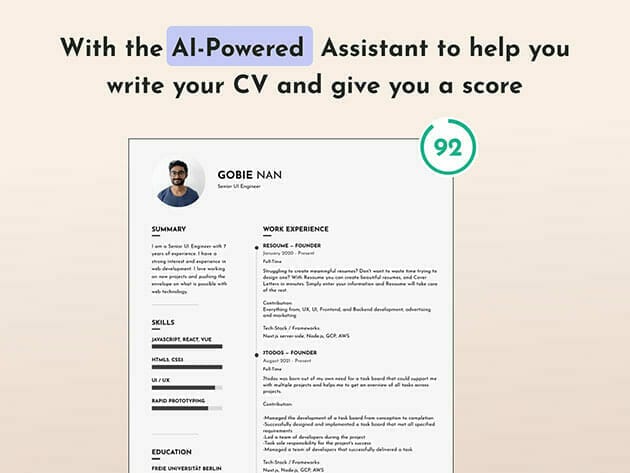 Resoume is an easy-to-use resume, portfolio, and cover letter builder that helps you create beautifully designed, ATS-ready documents that let your skills shine. Are you worried that your resume will be rejected by an ATS because of the format, or that your portfolio won’t stand out from the pile? Put your fears to rest and get Resoume.