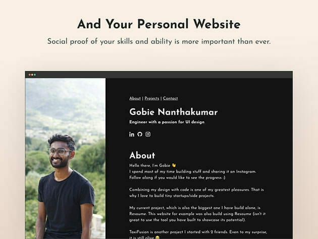 Your personal website. Connect everything together with your personal website. All in one place with Resoume