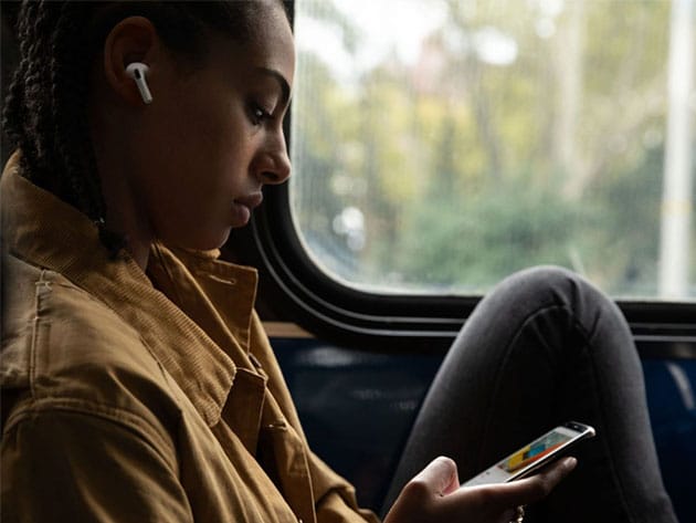 The AirPods Pro is designed to deliver Active Noise Cancellation (ANC) for immersive sound, with transparency mode so you can hear your surroundings and a customizable fit for all-day comfort. These earphones have force sensors on the stem making it easy to control music and calls as well as switch between ANC and Transparency mode. You can also read your messages through your AirPods with Siri, and even share an audio stream on two sets of AirPods connected to the same device! Enjoy all of these perks and more for up to 5 hours and 24 additional hours with the included Wireless Charging Case.