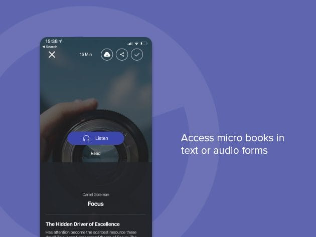 Access micro books in text or audio forms