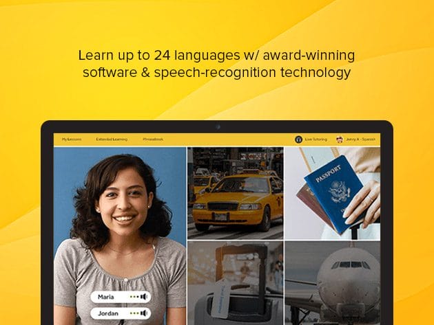 Learn up to 24 languages (1 at a time) w/ award-winning interactive software & proprietary speech-recognition technology that analyzes the words you say 100 times per second