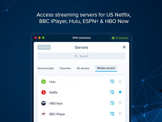 Access servers for US Netflix, BBC iPlayer, Hulu, ESPN+ & HBO Now