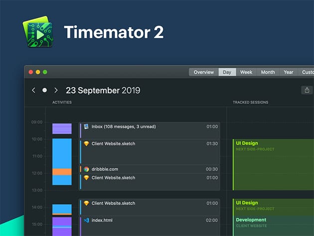 Automate your time-tracking and forget about the timer…forever. Packed with convenient features, Timemator 2 makes timekeeping easier. Timemator automatically captures everything you do on your Mac. You can go back to review what you were working on and assign time to your projects. Create your own rules and time the apps you use. Timemator also provides you with comprehensive reports in the form of a timeline, chart, or list. With these features, you can take into account how your time is distributed while working, adjust your workflow, or easily calculate your revenue for tasks. Every second counts. Focus on your work and let Timemator do the tracking for you.