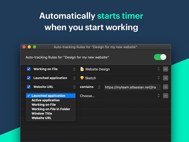 Define your rules & automatically time working on files and apps