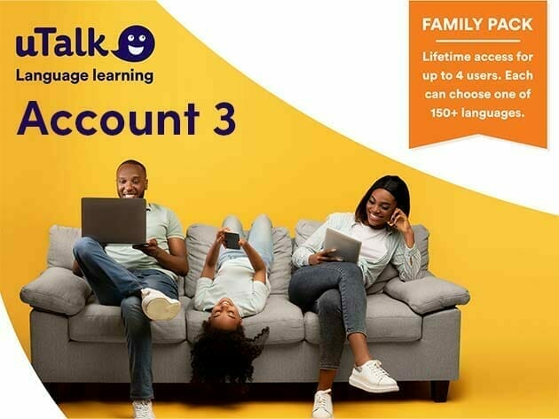 Start speaking in minutes! uTalk is now delighted to offer you a 4-user pack for you, your family, and your friends to learn a language. Each user can choose one of the 150+ languages available that they want to learn, each of the 4 users can either learn the same language or all learn different languages. Join the 30+ million people who have used our language learning method.
