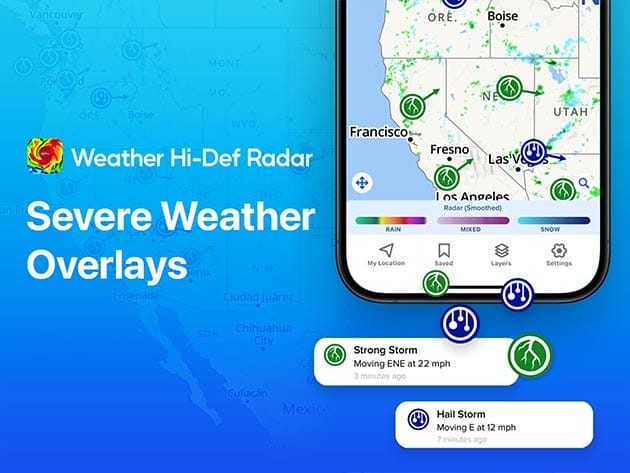 Advanced Map Overlays provide crucial weather information, from icy road conditions to tropical storms, active wildfires, earthquakes, air quality, and more. Rely on Severe Weather Alerts to get notified when precipitation falls or lightning strikes near you, so you can stay prepared—and stay safe.