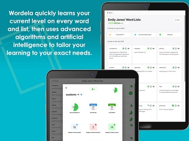 Wordela helps you master any vocabulary – quickly, easily, and automatically – in just 10 minutes a day. Improve your communication with effective lessons, flashcards, spelling statistics, curated lists, and more. Based on expertise spanning over 15 years, Wordela includes the latest advancements and technology to take your vocabulary to the next level.