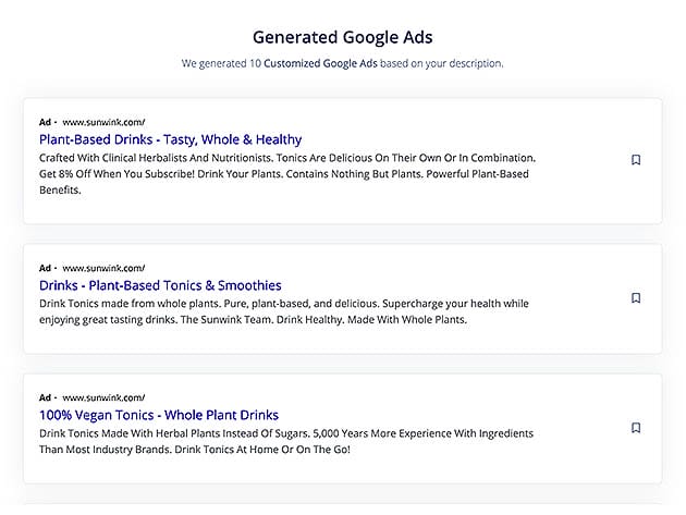Hit the “Generate” button to generate a dozen high-converting copy variants