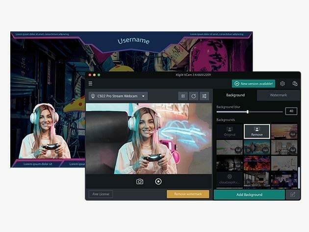 XSplit VCam offers cutting-edge background replacement, removal, and blurring that’s possible with any webcam and without the need for expensive green screens, complicated lighting setups, and tons of space. Easily open an app, add XSplit VCam as your camera source, and replace, remove, or blur your background. This tool works with streaming apps such as Open Broadcaster Software (OBS), Steamlabs, and XSplit. Perfect for podcasts, vlogs, talk shows, or other video projects. It works with all major video chat applications and conferencing solutions, so you can use it for remote work, virtual interviews, meetings, or teaching. XSplit VCam gives more flexibility which allows you to use your mobile device as a webcam.