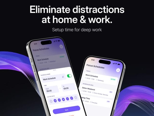 • Focus Schedule: Stay focused by blocking distracting apps for a set time / decide on times when you want to be focused & when opening distracting apps is hard
