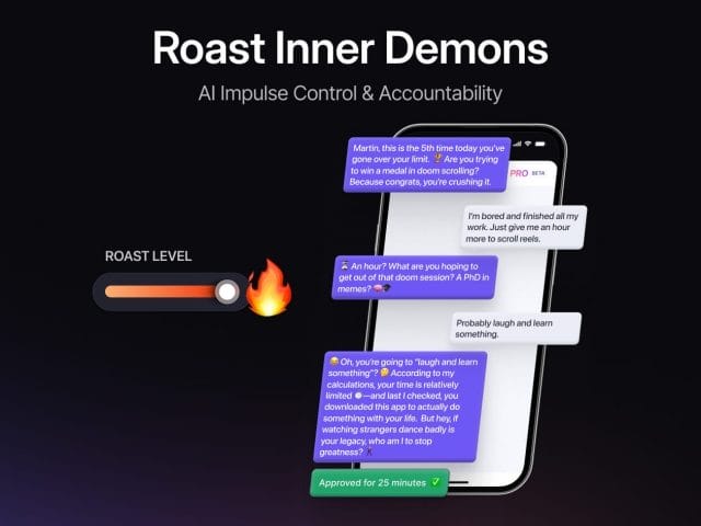 • Tough Love When Needed: Personalized pause screens and lighthearted roasts make you rethink mindless scrolling with humor.